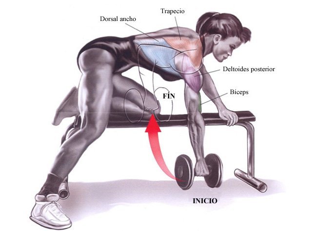 Hay otro que es en el suelo, pero las piernas estiradas como si fueras a hacer flecciones.. también con mancuerna y se llama "remo renegado"